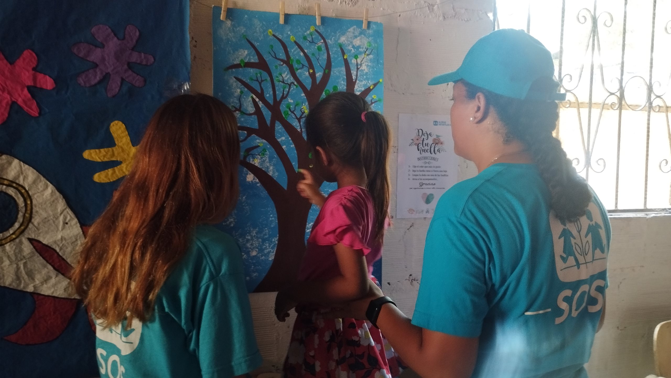 En su barrio Gladys* se encontró con su vecina Génesis, una joven mujer migrante, que la invitó a su casa para conocer y participar del proyecto de Aldeas Infantiles SOS. Lo que su vecina le había dicho era que seguramente eso le iba ayudar mucho en su relación con Sofía* y que la niña también podría aprender y reforzar sus conocimientos, pero, sobre todo, aprender sobre sus emociones y a relacionarse con los otros niños y niñas.