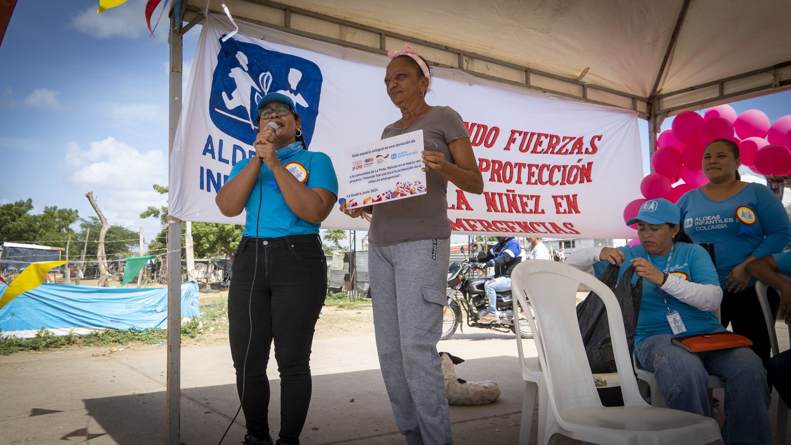 “Prácticamente aquí se nos decía como migrantes -tú no tienes derecho a la salud, tú no tienes un carnet- y Aldeas vino a abrirnos los ojos porque muchos no sabíamos que nosotros tenemos acceso a salud, como todos igual, sabíamos que había derechos humanos, pero nos los reconocíamos. Y aquí ellos nos mostraron, nos guiaron y han hecho tantas cosas, tanto en el entorno de la comunidad, como en los niños y en nosotros. Ha sido un cambio bien hermoso, como seres humanos de que ¡sí, todos somos iguales!, nos han enseñado tantas cosas que prácticamente yo digo que el desconocimiento de esas cosas nos hacía vivir en oscuridad porque no sabíamos cuáles eran nuestros derechos, ni los derechos de nuestros hijos”.