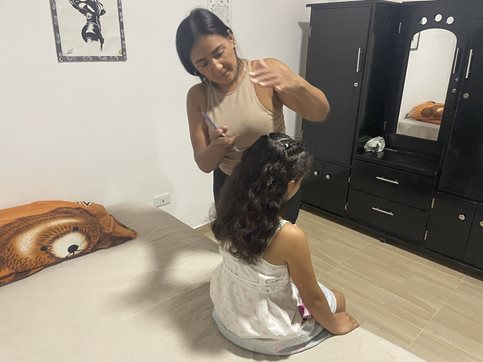 “Me parece muy bonito uno ayudar a los niños y niñas, darles cariño, ayudándoles a echar pa’ delante con el estudio (...) estar al día con ellos, (...) Me ha gustado mucho. Los llevo, los aconsejo, les hago ver las cosas, les digo -esto es así mijos, tienen que adaptarse a un nuevo ambiente, pasaron por muchas cosas en su casa, pero acá es diferente”. María los guía con paciencia y cariño, mostrándole que la vida puede ser diferente, y que pueden aprender a confiar y a sentirse amados.