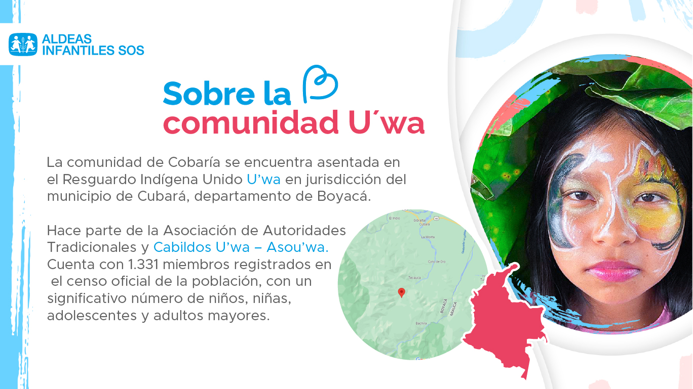 En la comunidad de Cobaría del Resguardo Indígena Unido U’wa ubicada en Cubará, Boyacá, estamos fortaleciendo las capacidades de las familias para proteger adecuadamente a los niños, niñas y adolescentes, y mejorar las condiciones de salud primaria y nutrición, especialmente para los niños y niñas menores de 5 años.