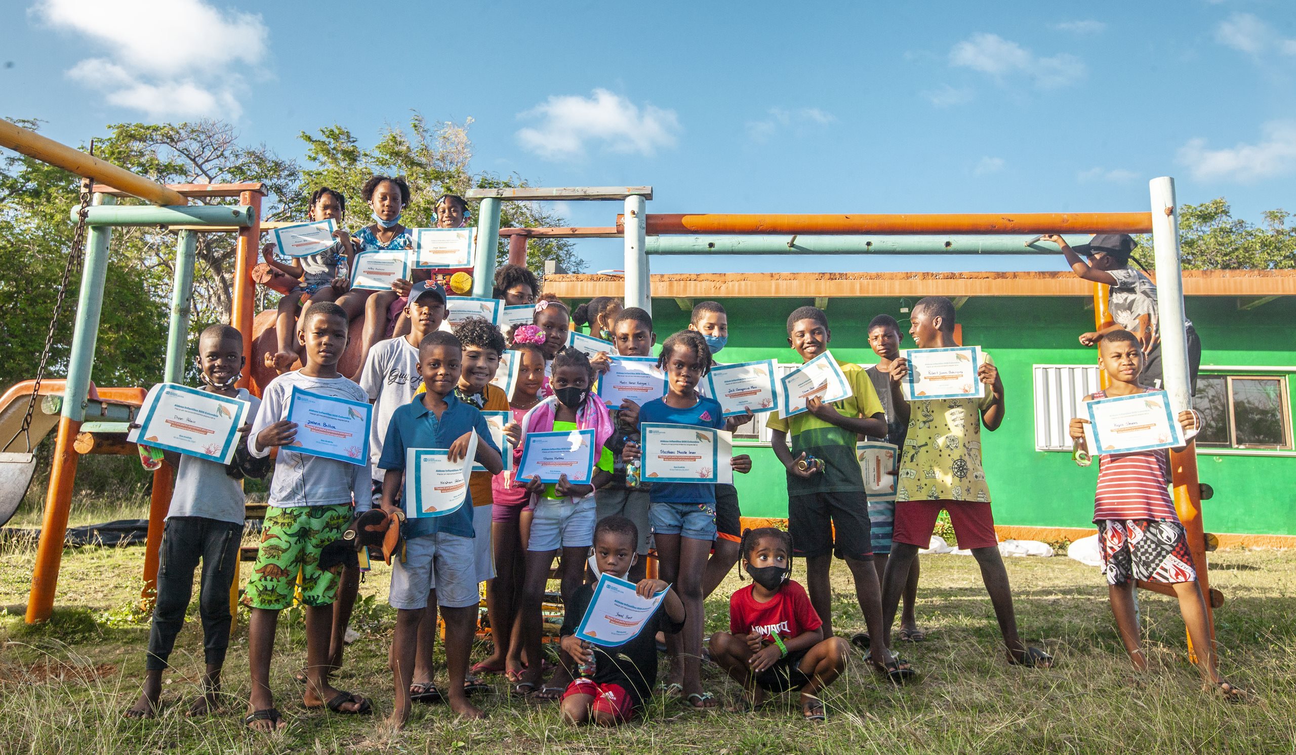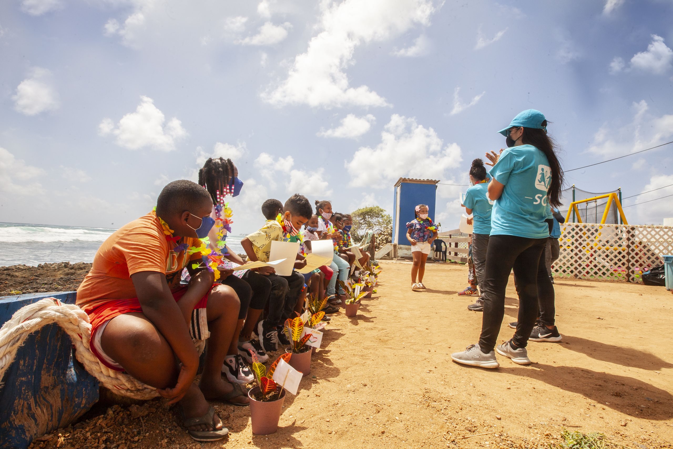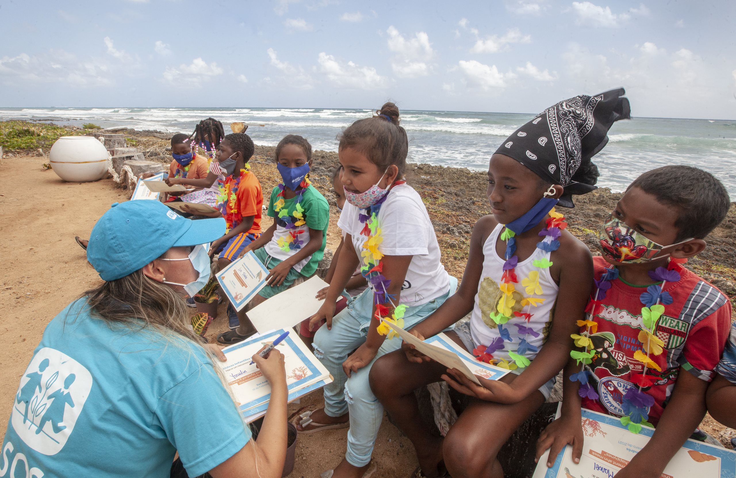 Niños, niñas y familias residentes de la isla de San Andrés y Providencia, severamente afectados por la emergencia humanitaria ocasionada por el paso del huracán IOTA, ocurrida en noviembre de 2020.